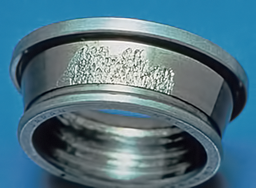 接觸表面處有損傷,這些損傷可能是原始的,即制造過程中形成的劃傷、碰痕,也可能是使用中產(chǎn)生的,如潤滑劑中的硬顆粒,軸承零件相對運動產(chǎn)生的微小擦傷;損傷處可能存在潤滑不良,如潤滑劑貧乏,潤滑劑失效;不良的潤滑狀態(tài)加劇滾動體與滾道之間的相對滑動,導致表面損傷處的微凸體根部產(chǎn)生顯微裂紋;裂紋擴展導致微凸體脫落,或形成片狀剝落區(qū)。這種剝落深度較淺,有時易與暗灰色蝕斑相混淆。